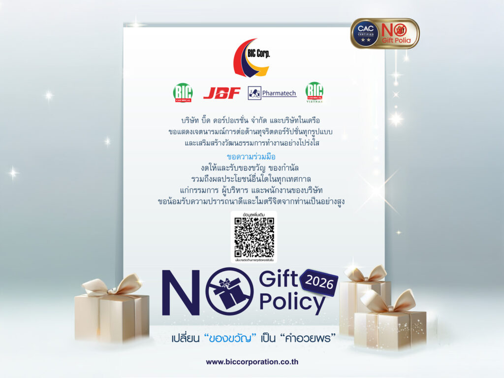 ✨ เปลี่ยน “ของขวัญ” เป็น “คำอวยพร” ✨ บริษัท บิ๊ค คอร์ปอเรชั้น จำกัด และบริษัทในเครือ ขอแสดงเจตนารมณ์การต่อต้านทุจริตคอร์รัปชั่นทุกรูปแบบและเสริมสร้างวัฒนธรรมการทำงานอย่างโปร่งใส ขอความร่วมมืองดให้และรับของขวัญ ของกำนัล รวมถึงผลประโยชน์อื่นใดในทุกเทศกาล แก่กรรมการ ผู้บริหาร และพนักงานของบริษัท ขอน้อมรับความปรารถนาดีและไมตรีจิตจากท่านเป็นอย่างสูง